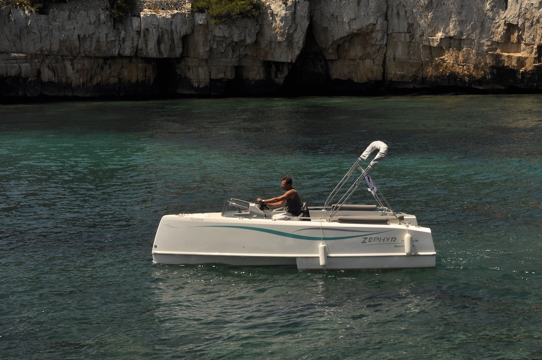 Bateau électrique ZEPHYR en mer à la sortie du Golfe du Morbihan
