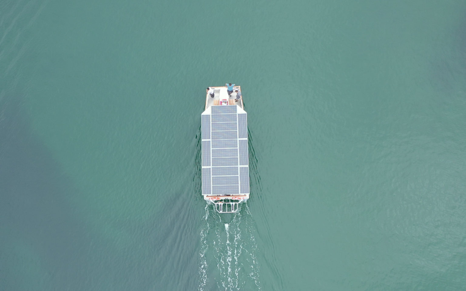 Muni de deux moteurs électriques de 10 kW, le bateau est très manœuvrant et évolue à une vitesse de croisière 5 nœuds. L’énergie nécessaire proviendra du quai, mais surtout d’un imposant toit solaire. On comptera 16 panneaux solaires de 225 Wc, pour un total de 3,3 kWc. Grâce à ces derniers, le catamaran est autonome à 3 nœuds, même avec ses 24 passagers à bord.