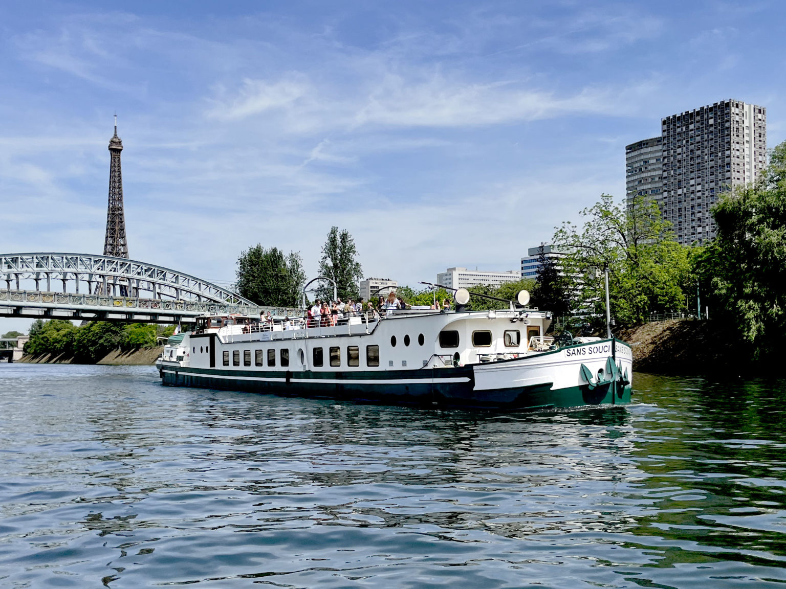 La Sans-Souci est une authentique péniche navigante datant de 1937 qui a été entièrement rénovée en 2016. construite à l’origine pour approvisionner la capitale en farine et en blé depuis Le Havre. La péniche s’est reconvertie en bateau de croisière à partir de 1988 et porte le nom de Sans-Souci en hommage à Romy Schneider dans son inoubliable rôle dans « La Passante du Sans-Souci ». Avec son intérieur tout en bois verni et cuivre, la péniche accueille jusqu’à 72 personnes en repas assis et 120 personnes en cocktail. Le bateau effectue, en moyenne, 130 croisières par an. https://parispeniches.fr/