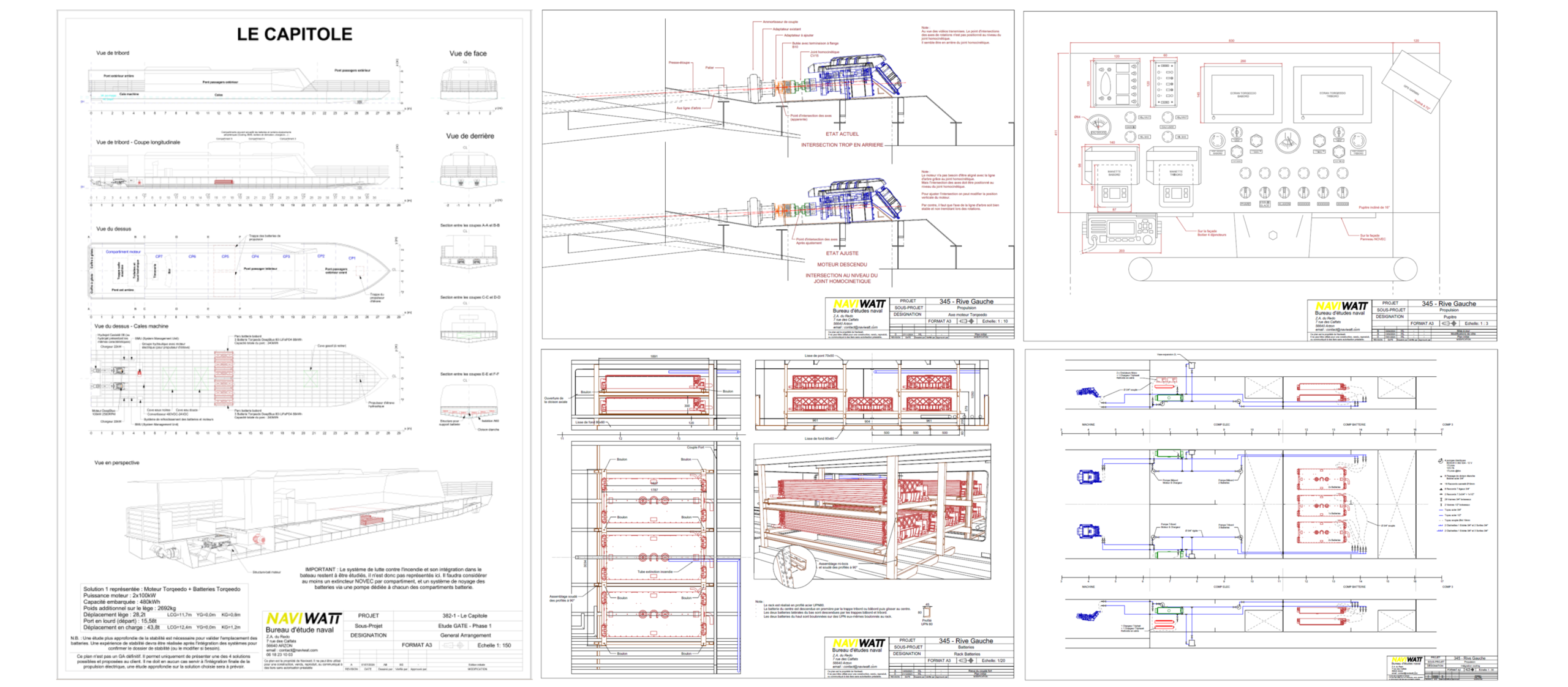 - La réglementation : En tant qu’expert de la propulsion électrique, NAVIWATT a toutes les clefs pour une intégration réussie et respectueuse des textes réglementaires, quel qu’ils soient (CE, D222, D245, D223b, ES-TRIN, Arrêté du 5 novembre 2018, …). Ces contraintes réglementaires sont prises en compte dès le début du projet, et le suivi réglementaire inclut dans la gestion de projet permet de s’assurer que le bateau obtiendra correctement son titre de navigation.