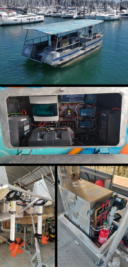 - L’autonomie : Du fait qu’avec une propulsion électrique, il est difficile d’atteindre l’autonomie d’une propulsion thermique, il est primordial de dimensionner correctement le parc batterie : ni trop pour ne pas alourdir plus que nécessaire le bateau, ni pas assez pour permettre une exploitation rentable. Ainsi, l’étude détaillée des besoins propulsifs et énergétiques que nous menons au début de chaque projet nous permet d’être confiants sur la bonne quantité d’énergie à embarquer, avec un système pensé intelligemment par rapport à l’exploitation (100% électrique, hybride parallèle ou hybride série en fonction du profil de navigation). Cette étude inclut des essais préalables à l’analyse et la comparaison de solutions viables.